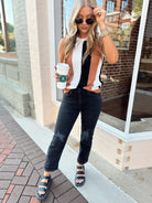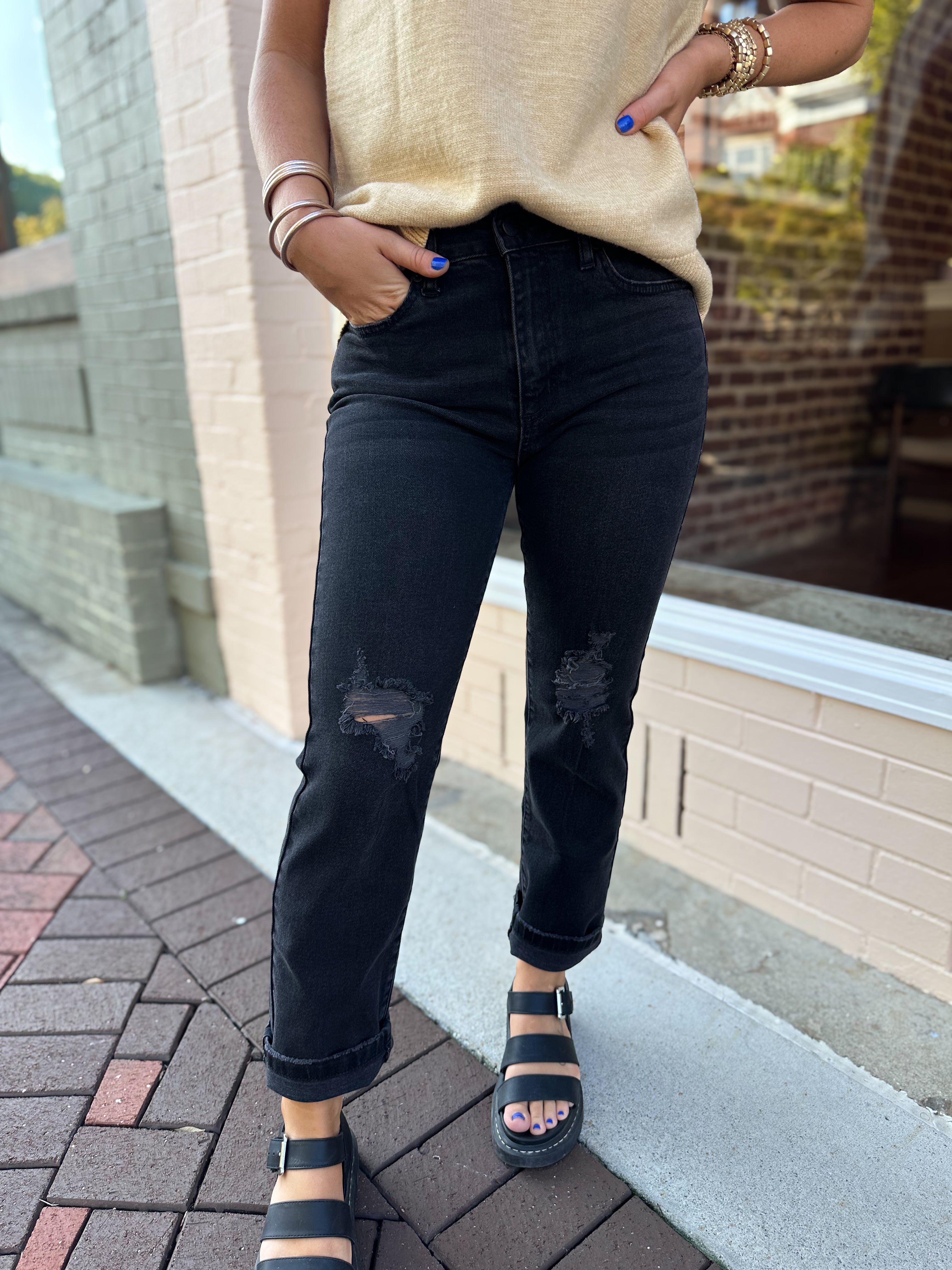 Obsessed is an understatement! These jeans feature a high rise, straight fit with some distressing around the knees. These do run small. We recommend going up a size.