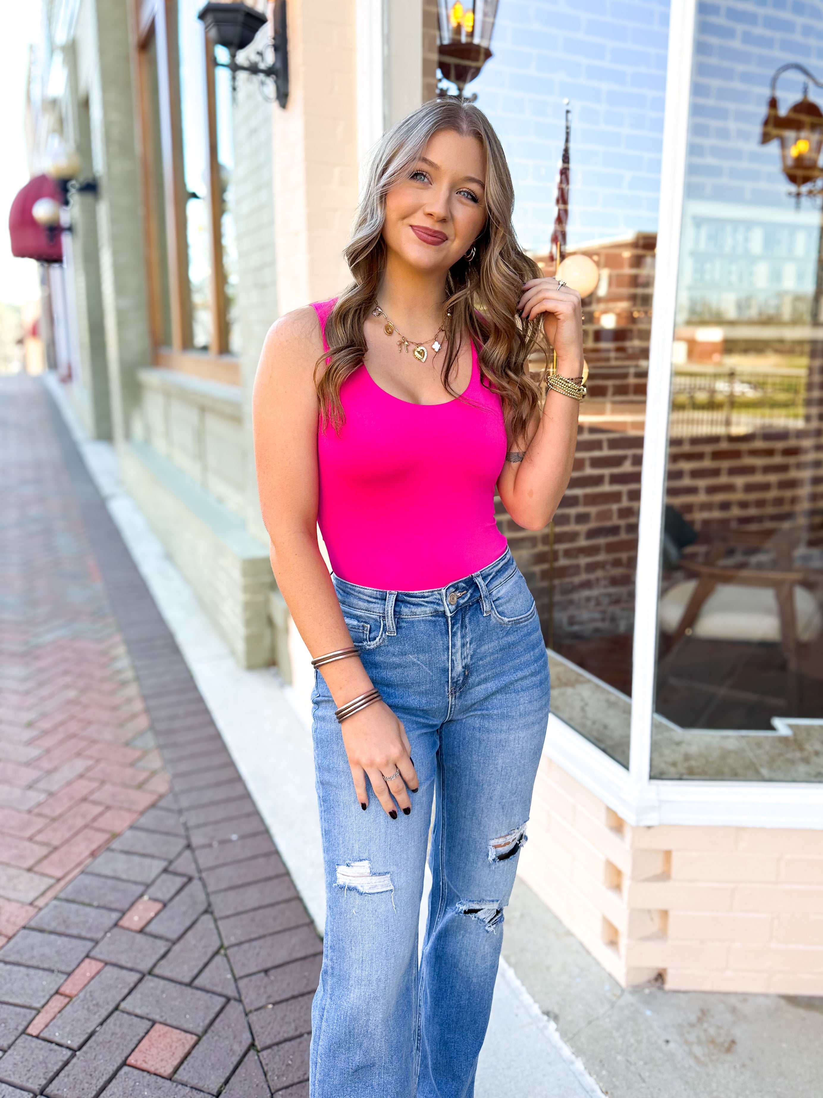 - Scoop neckline