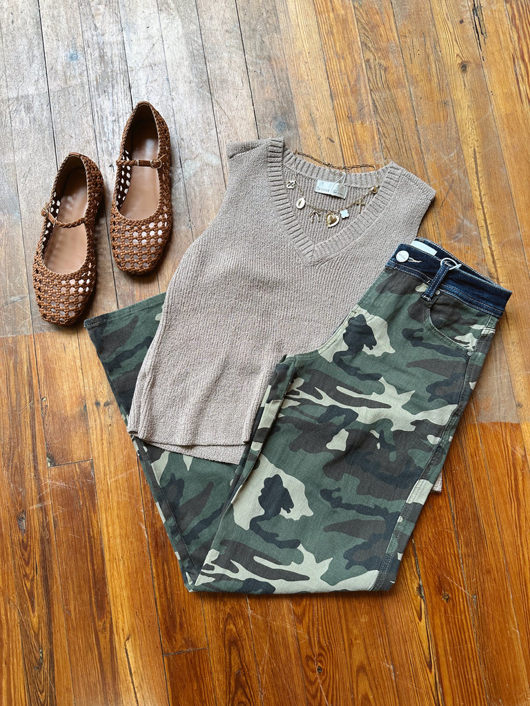 Camo Mid Rise Wide Leg Jeans