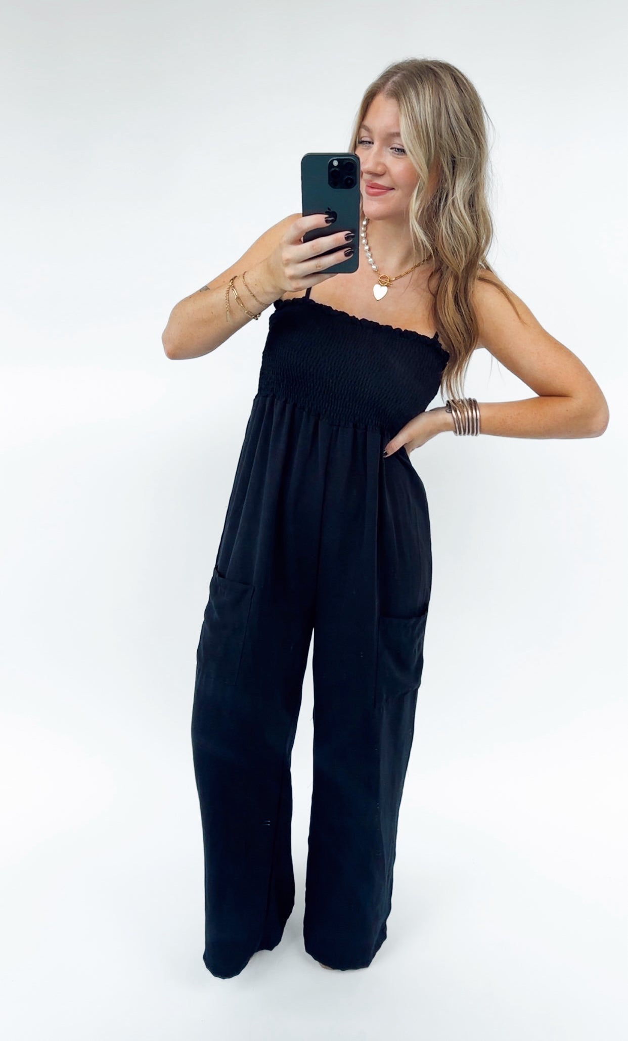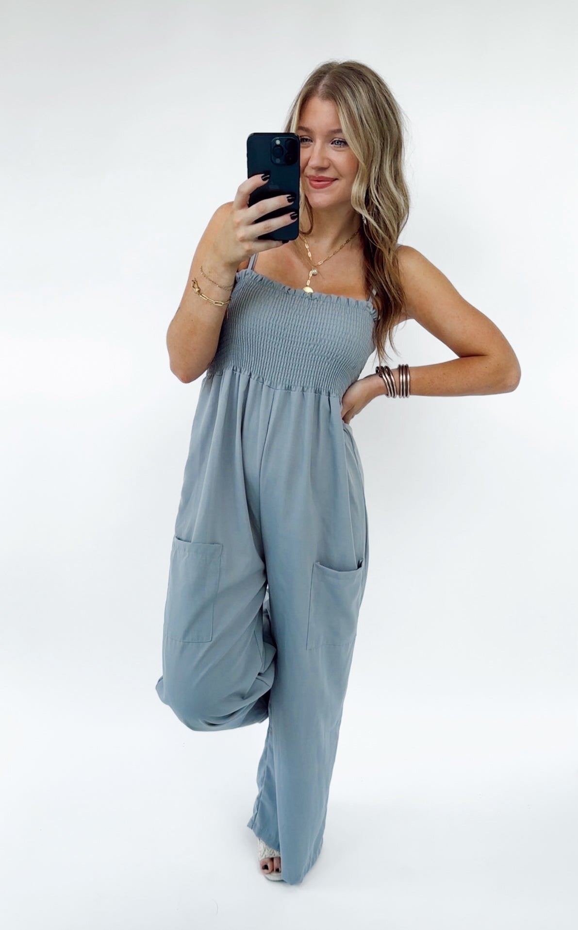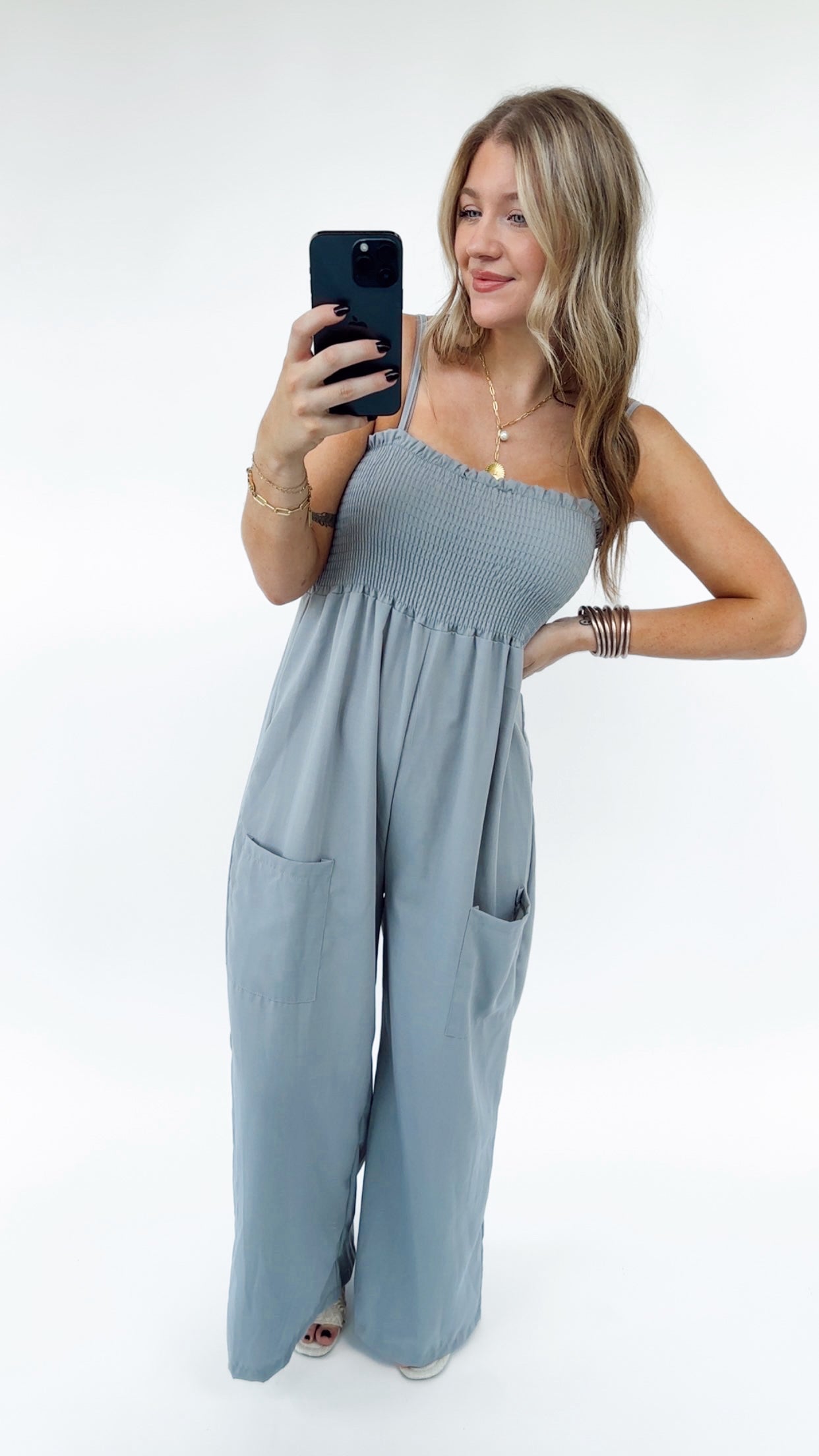 SALE!! Our versatile Cast Your Worries Away Jumpsuit can go just about anywhere! With a gorgeous smock detail, a flattering square neckline, and cute front pockets, you'll be ready for any occasion that comes your way!