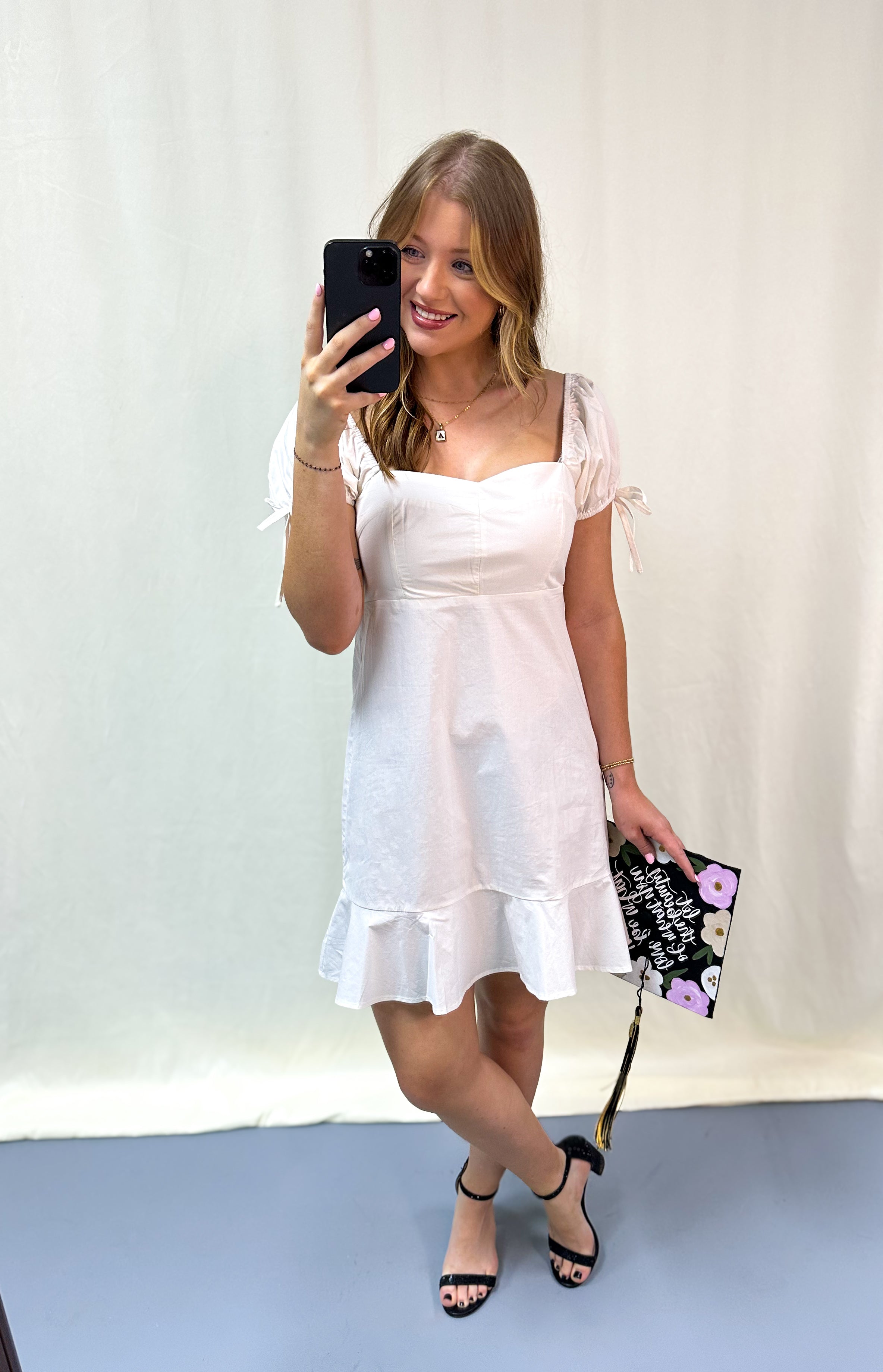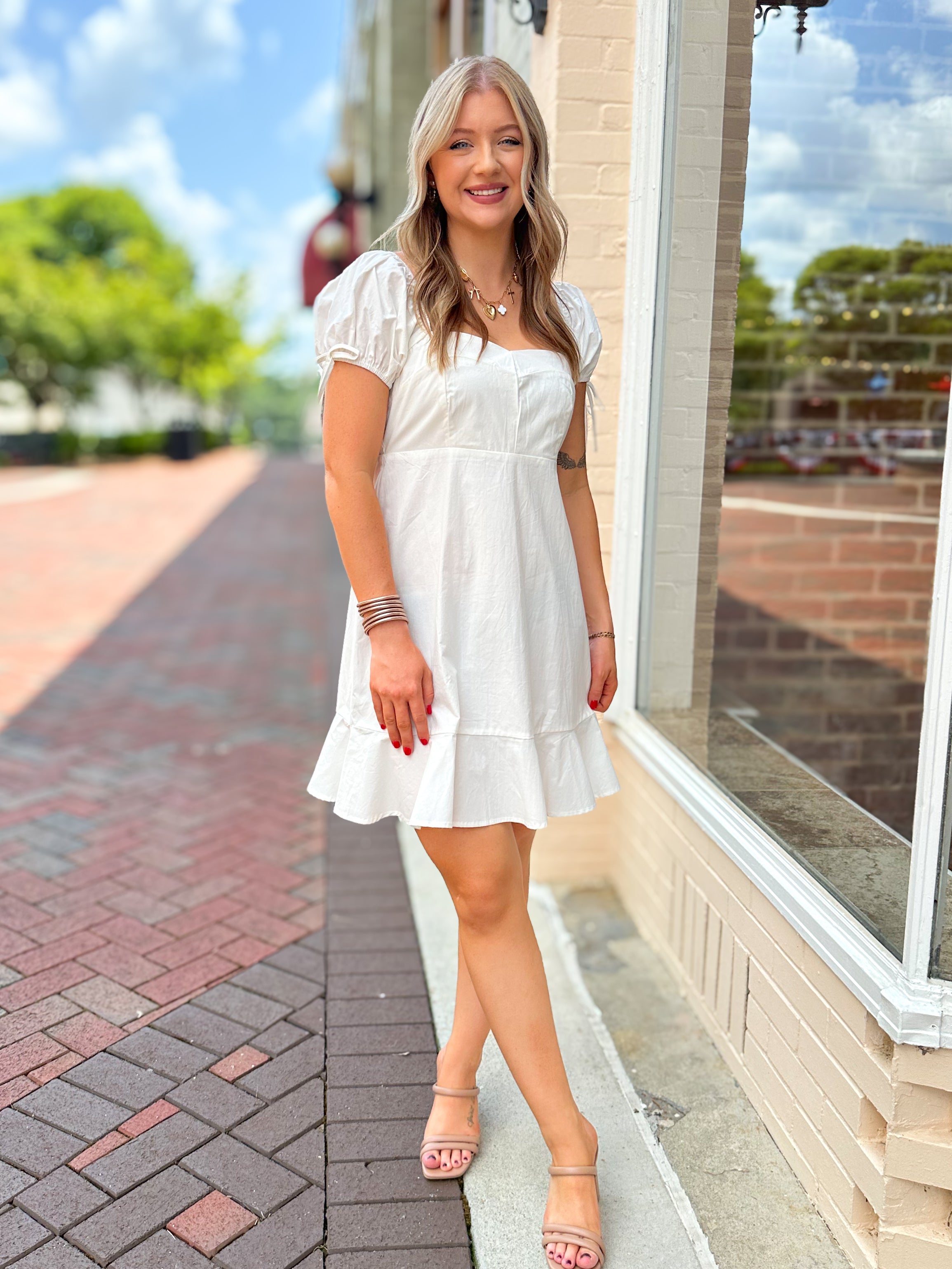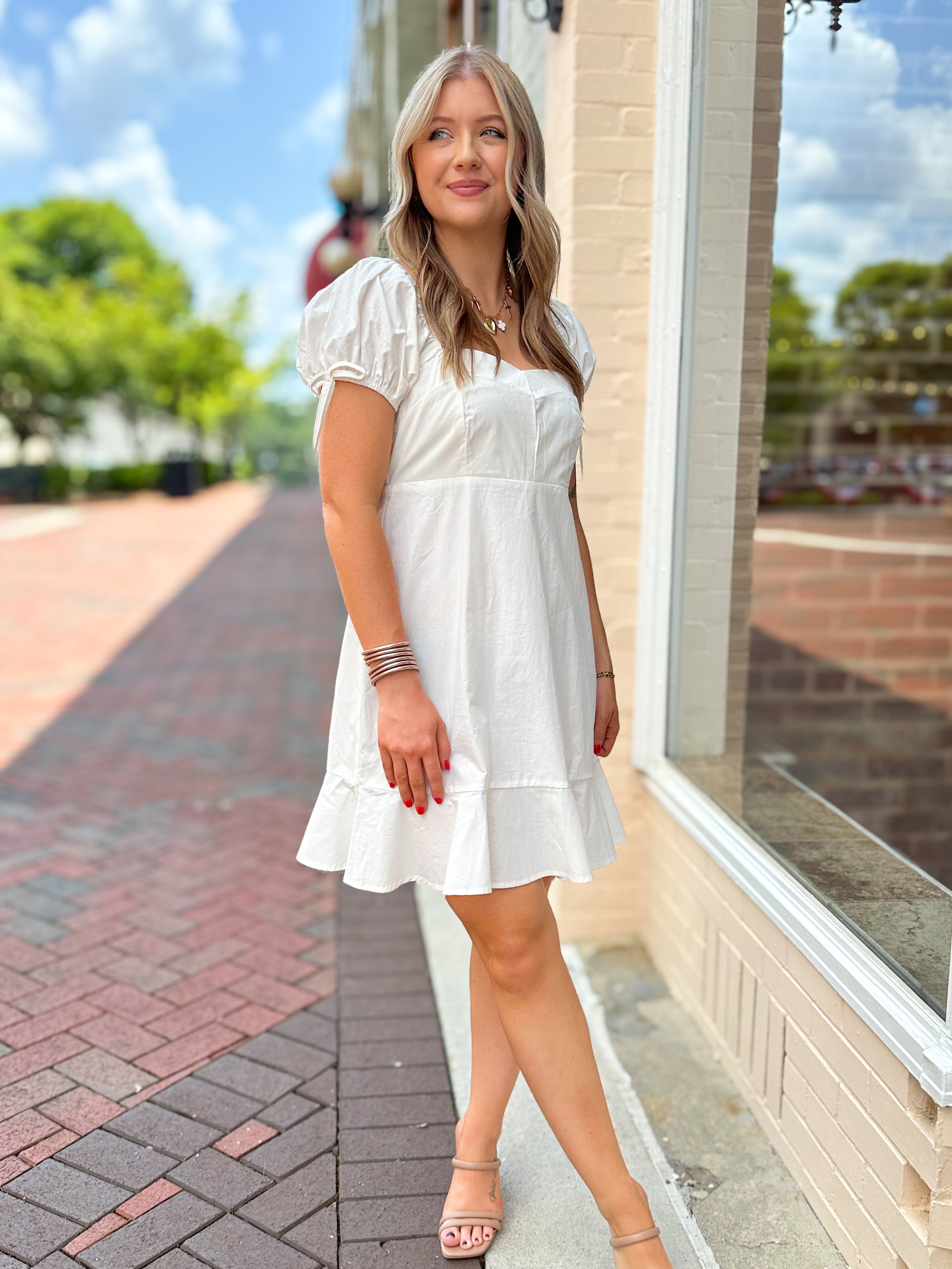 This gorgeous dress offers a flattering silhouette complemented by delicate puff sleeves and a charming sweetheart neckline, making it the perfect choice for any occasion.