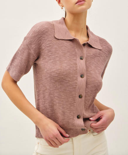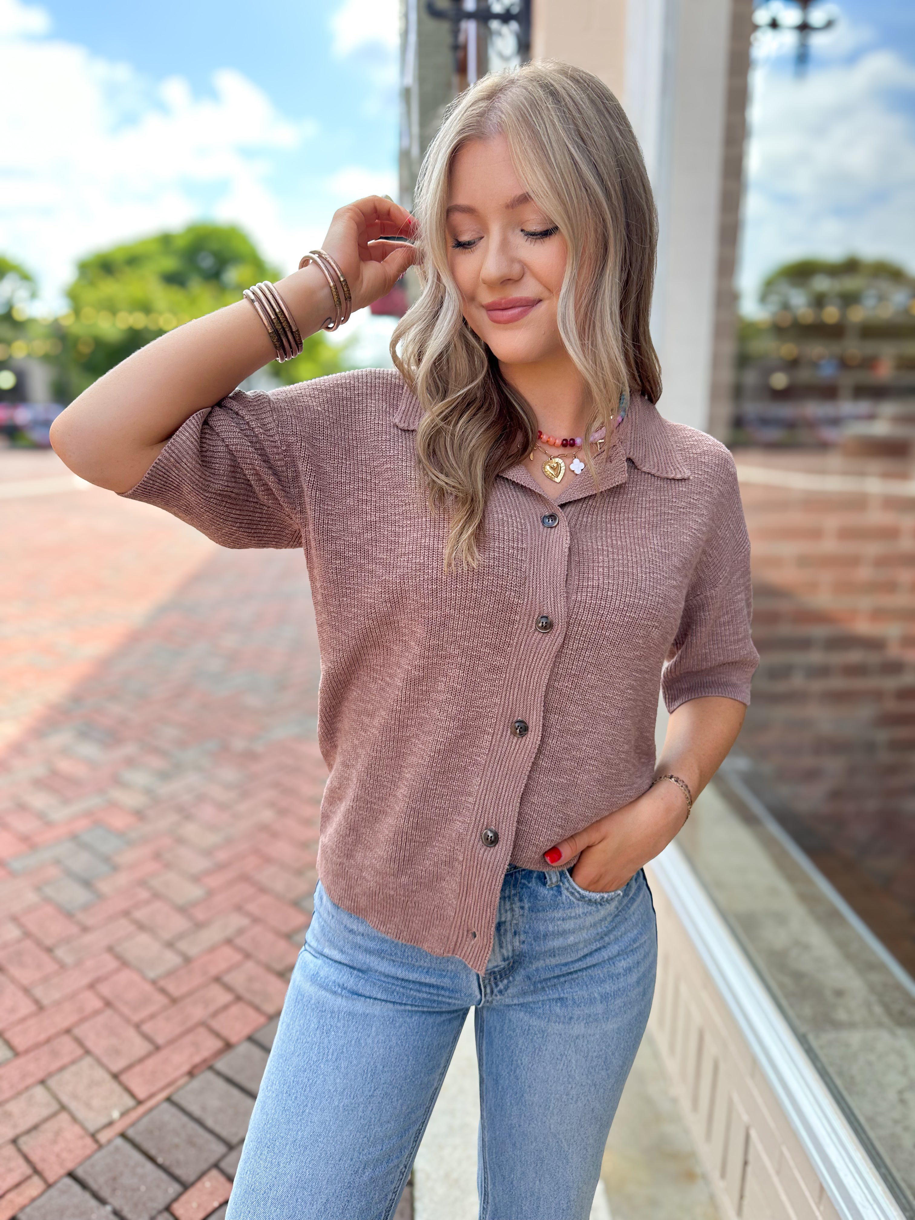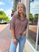 Textured and one-of-a-kind, this knit button up brings charm to any look!