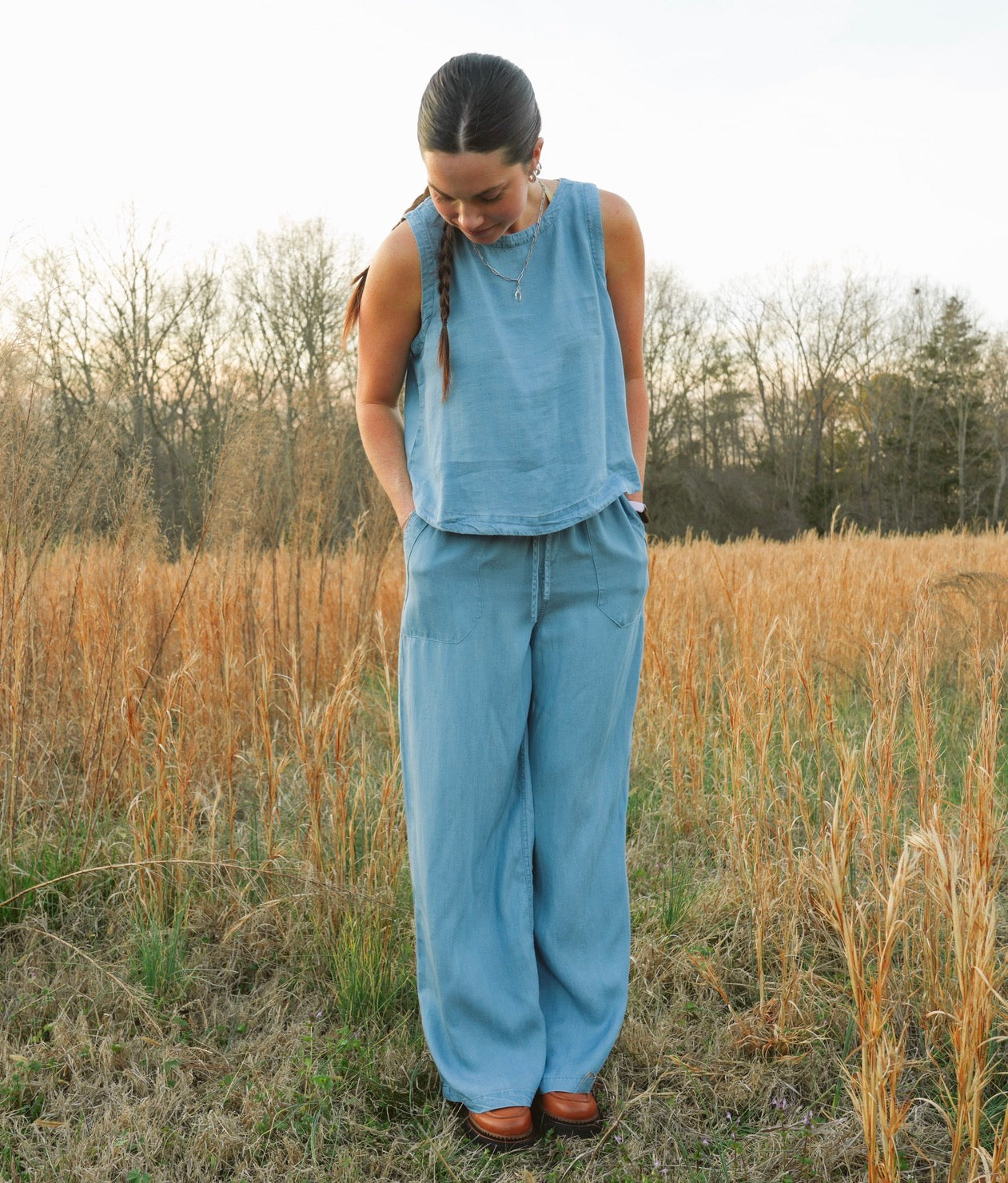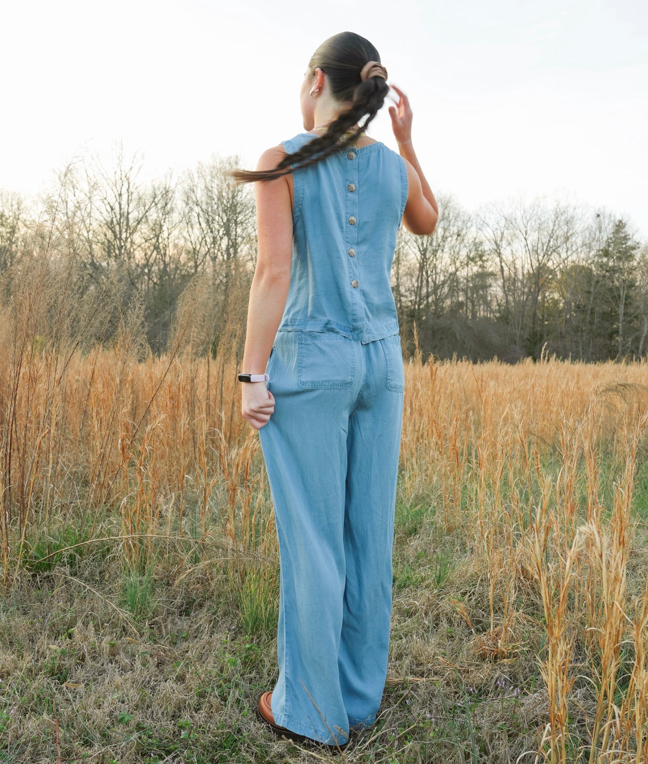 Meet your new go-to spring staple! These adorable chambray pants are the definition of effortless style. Designed with an elastic waist and simplistic wide leg detail, these are the pants that your spring wardrobe has been waiting for!