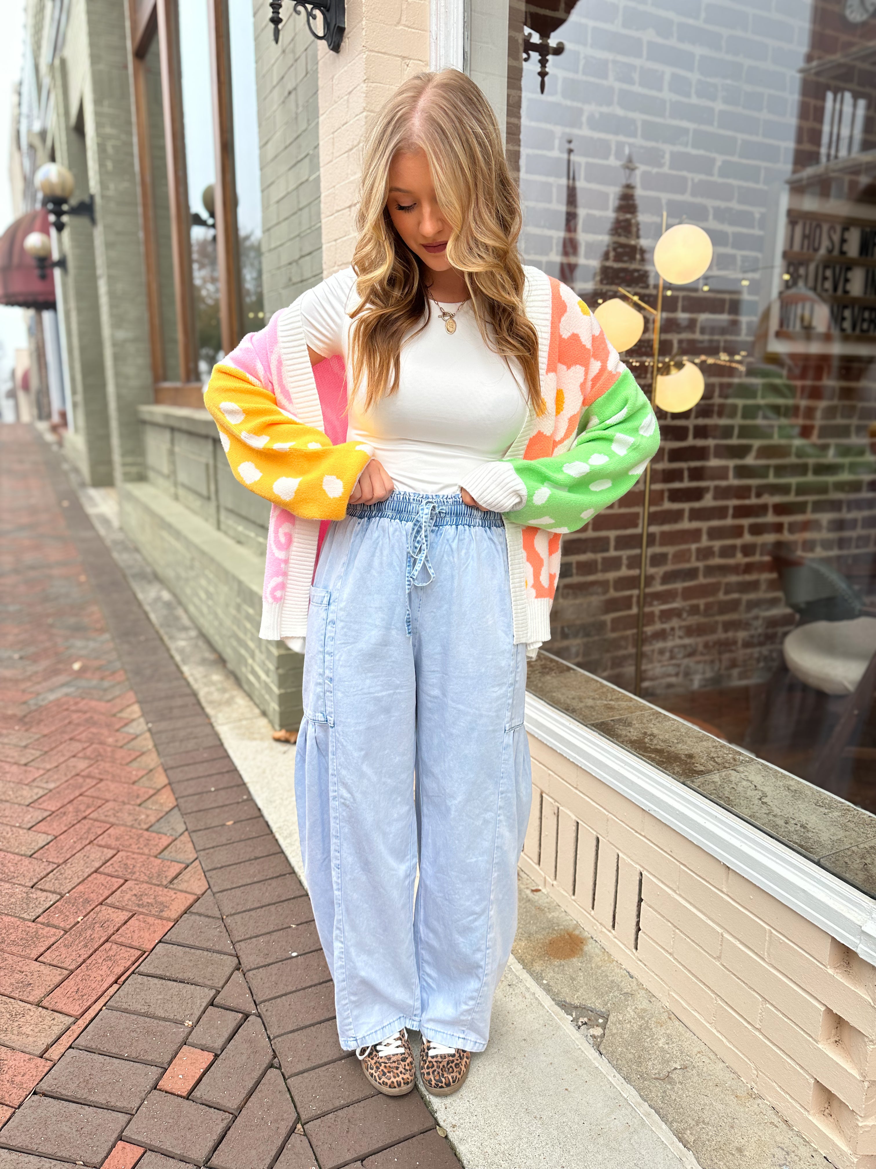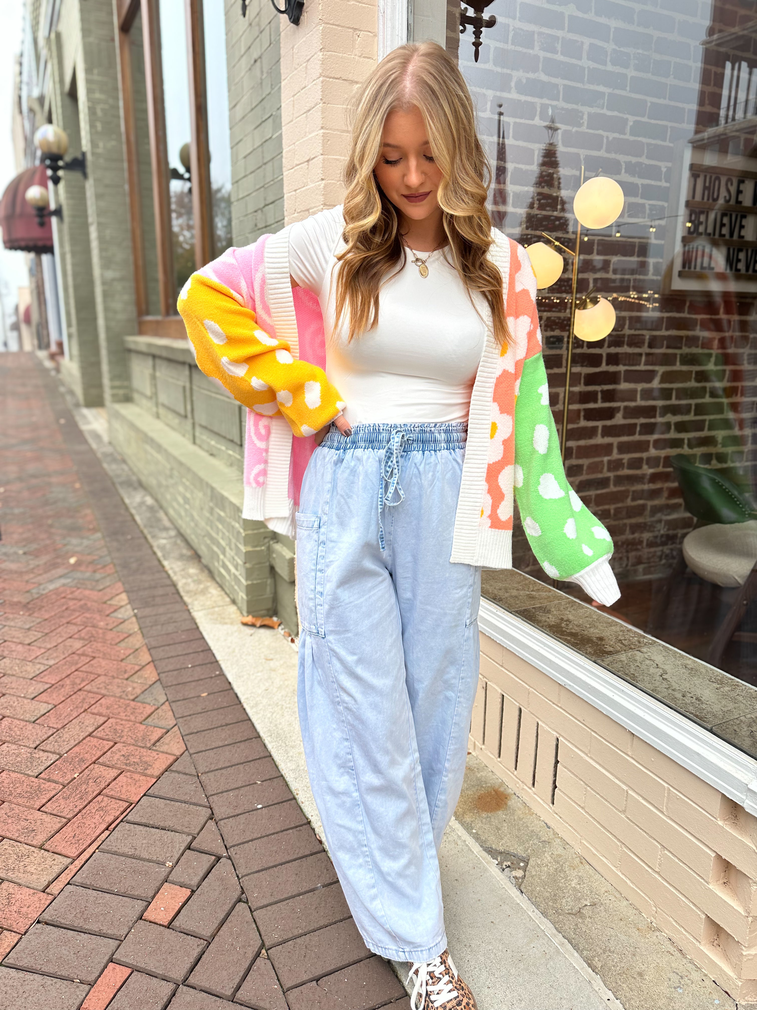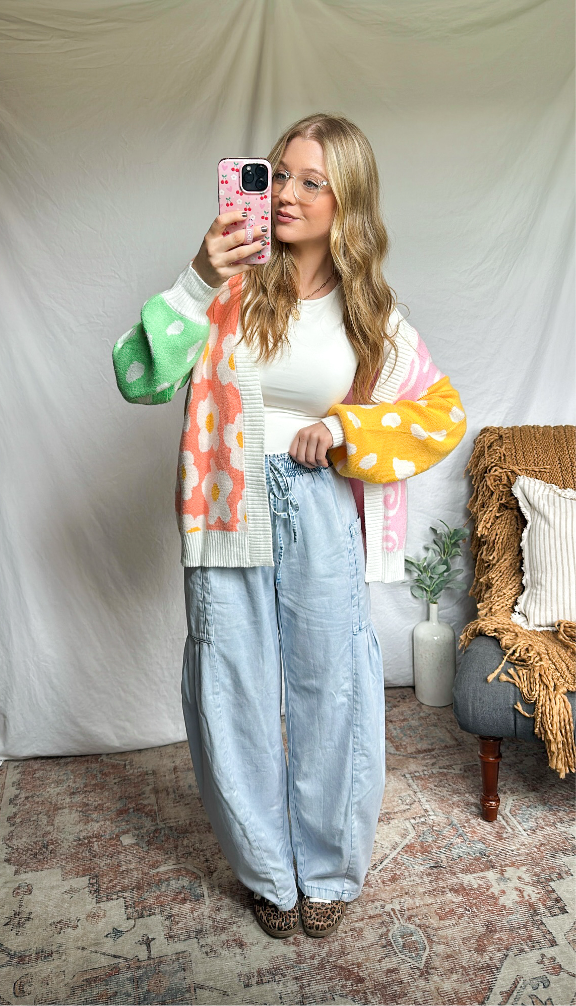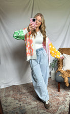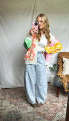 Add a fun and cozy statement to any of your outfits with this bold cardigan! Featuring vibrant patterns, this open-front cardigan offers comfort and style for any special occasion or chill day.