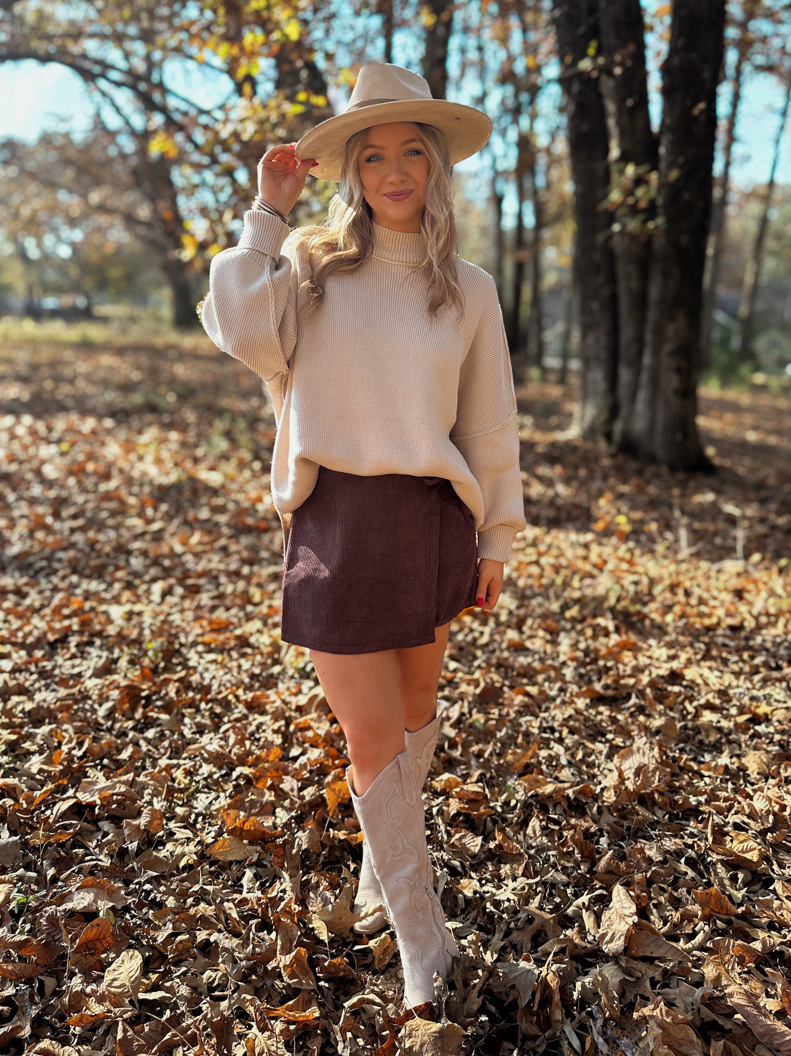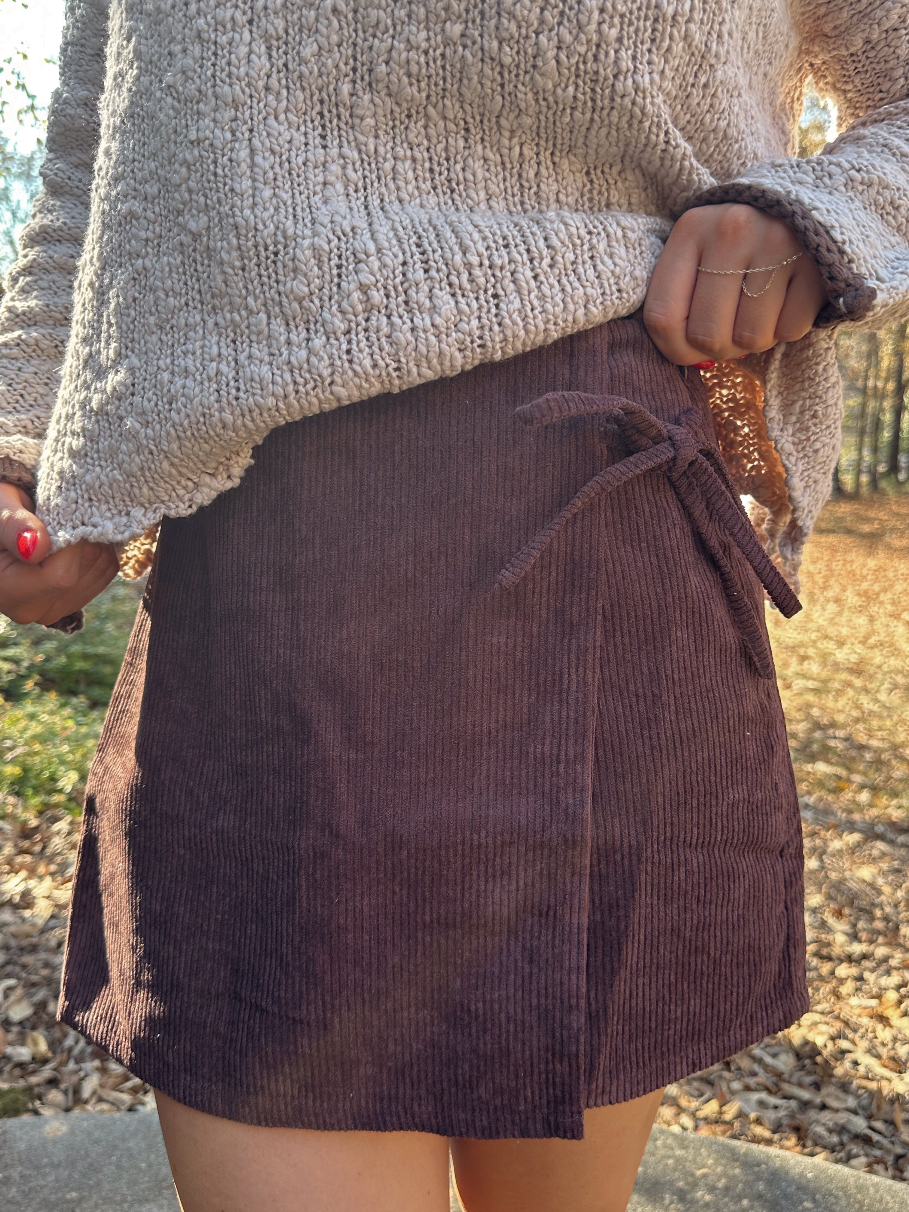 Our new Holiday Cheers Corduroy Skort features a front wrap style with bow details. This skort will keep you dressy and comfy through all of your holiday events!