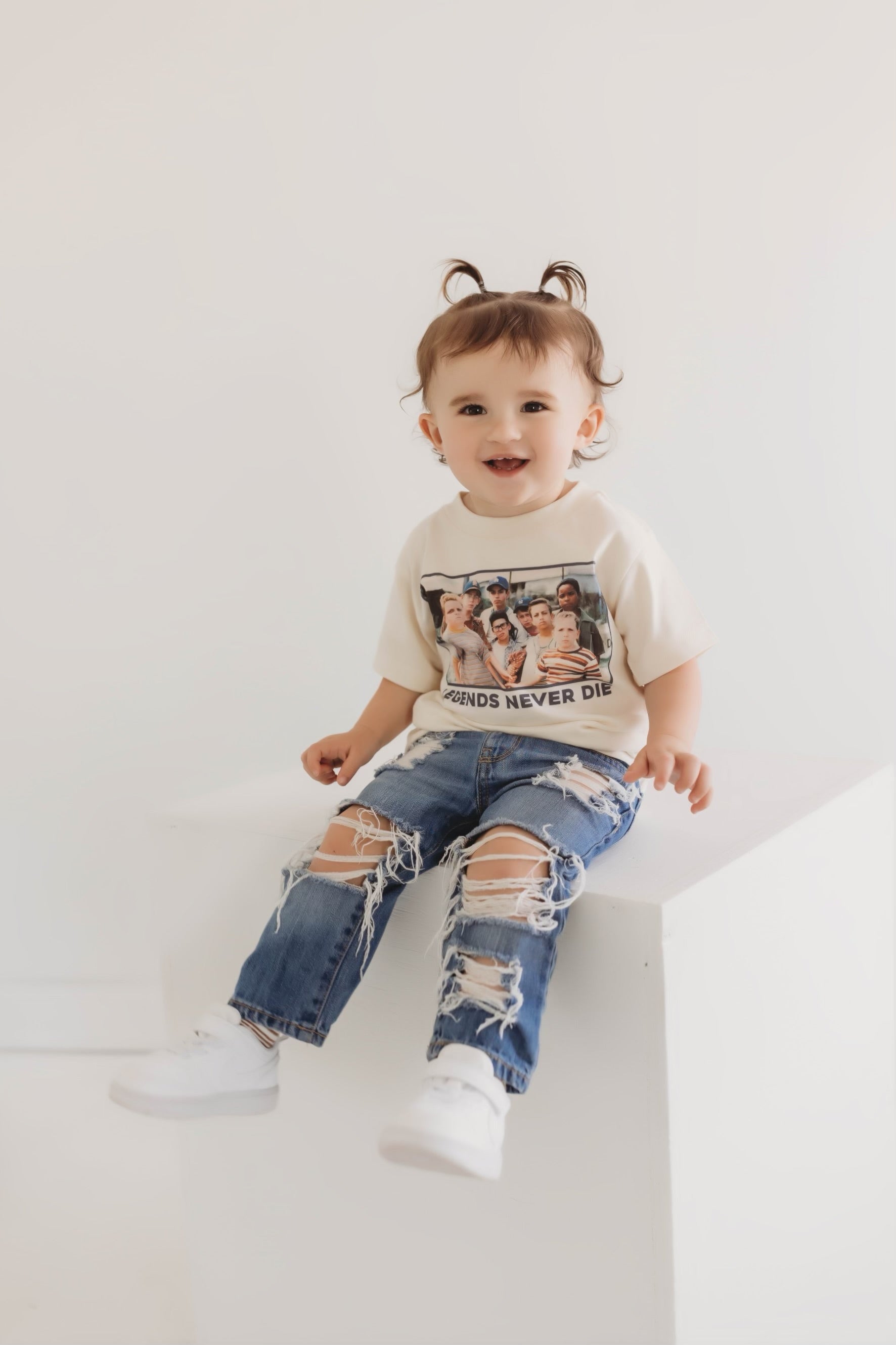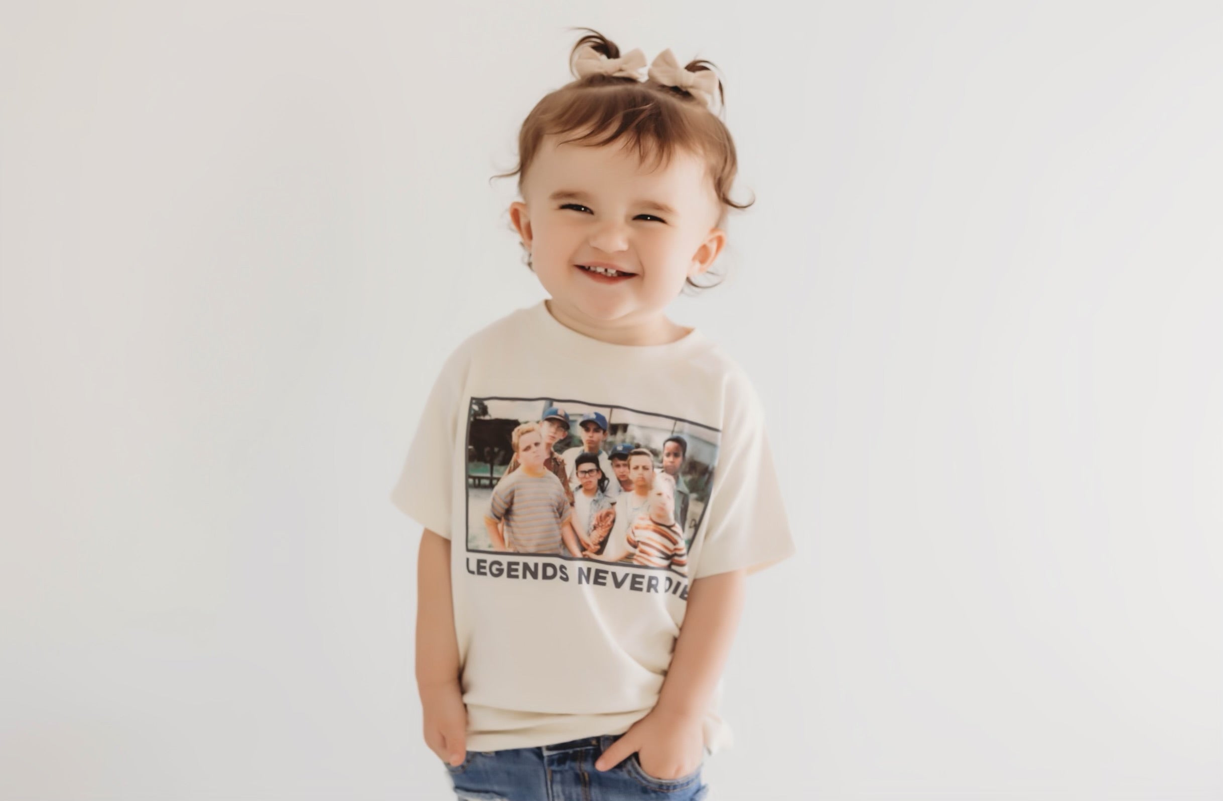 Step up to the plate in our new kids Sandlot Tee! Inspired by the new coming-of-age film “The Sandlot,” this shirt pays homage to the enduring spirit of childhood nostalgia and the bonds of friendship forged on the baseball diamond!