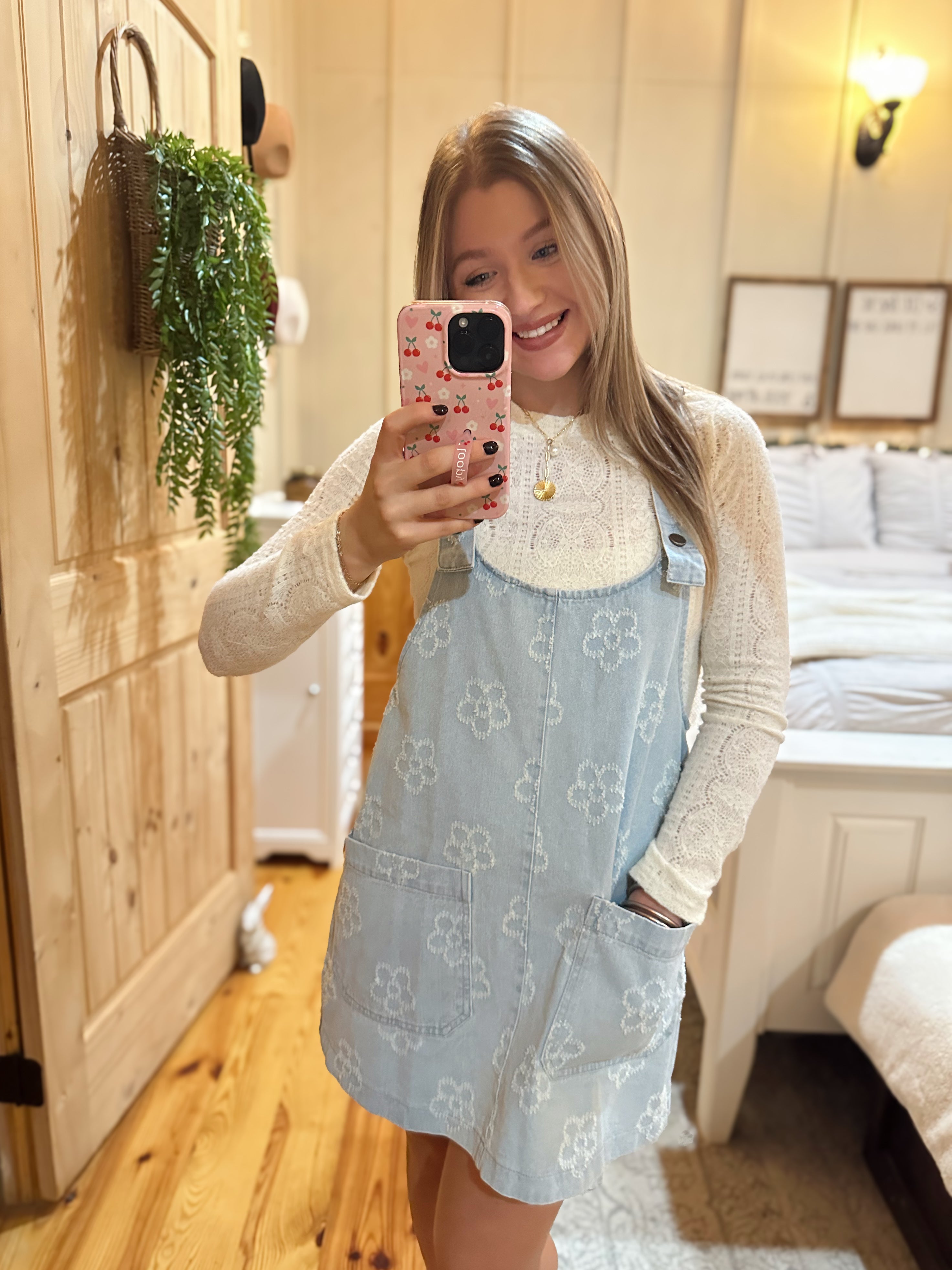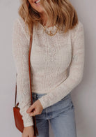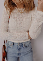 Add a touch of charm to your wardrobe with this dainty floral lace top. Featuring long sleeves and a slightly sheer design, it offers a delicate, feminine look that's perfect for layering. Whether dressed up or down, this versatile piece is a timeless staple that pairs beautifully with your favorite skirts, jeans, or under a cozy jacket. It is the perfect top to elevate any fall outfit.