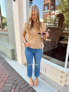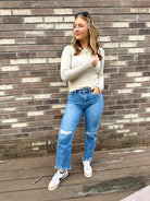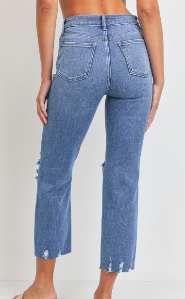 These high rise straight legged jeans will compliment any outfit perfectly. Talk about the perfect staple jean!! The quality is immaculate and the distressing adds the perfect touch.