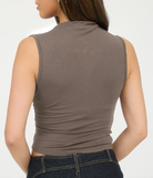 This buttery soft mock neck tank will pull together any look with ease. This top features a ruched shoulder and side detail, making it super flattering.
