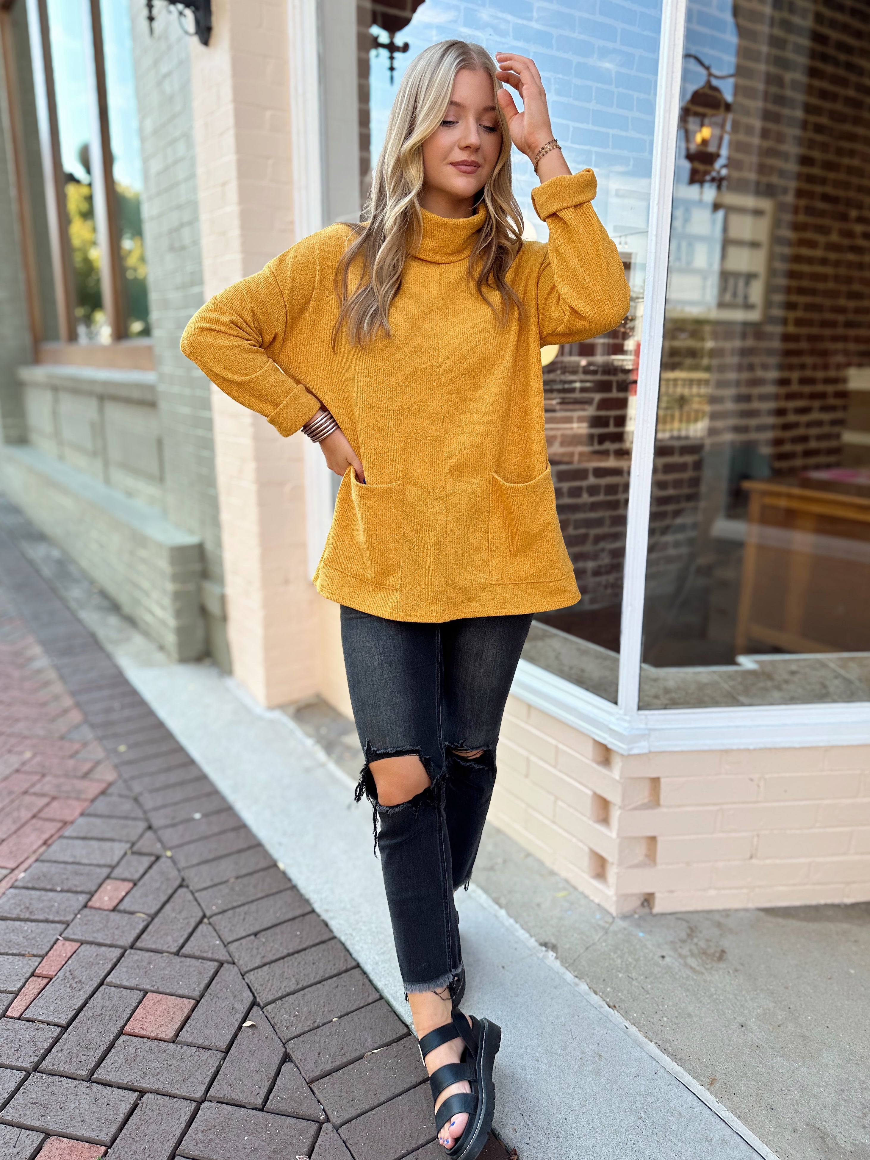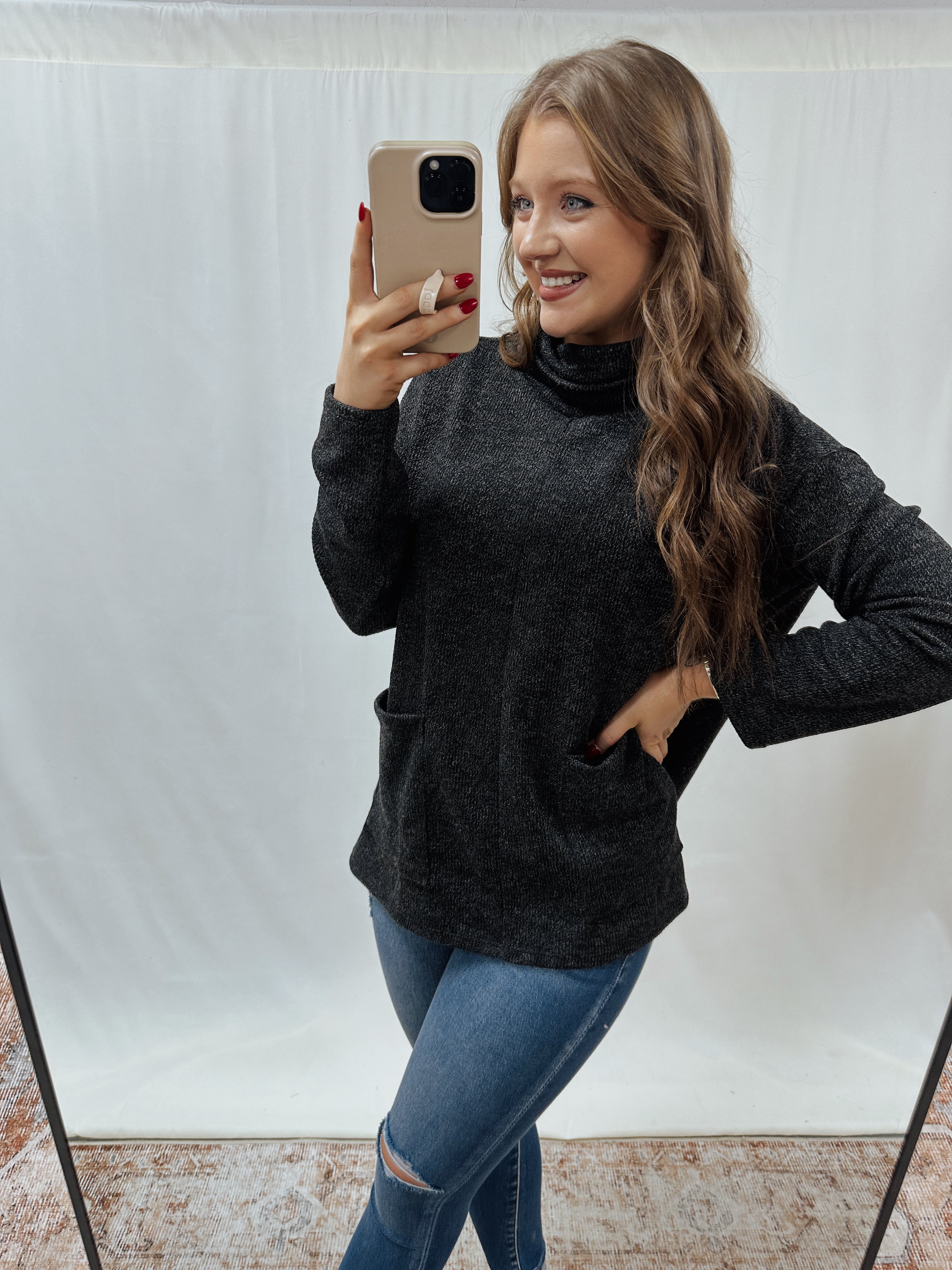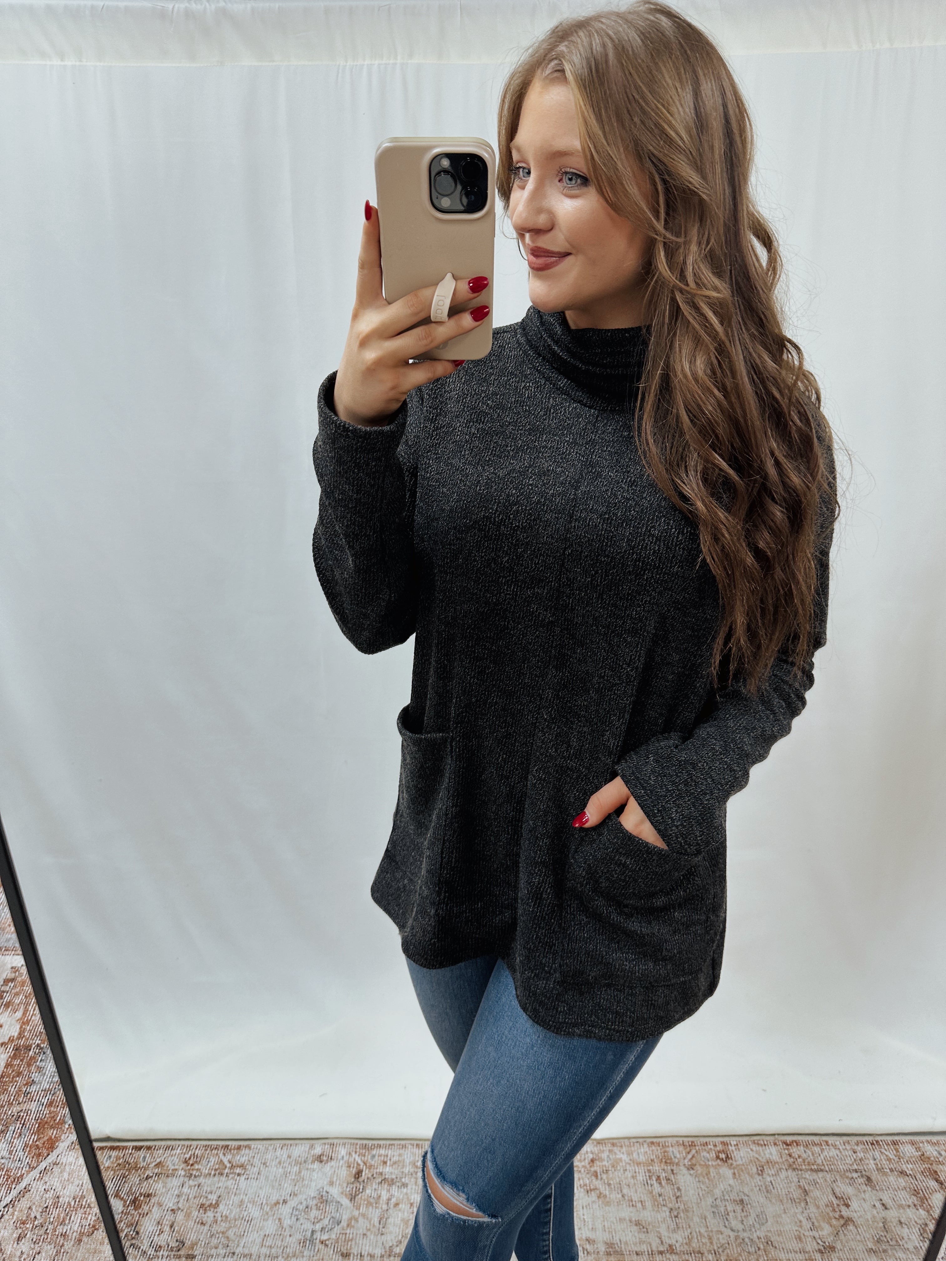 Stay cozy and stylish with our NEW turtleneck sweater! It will fit in perfectly with your everyday wardrobe.