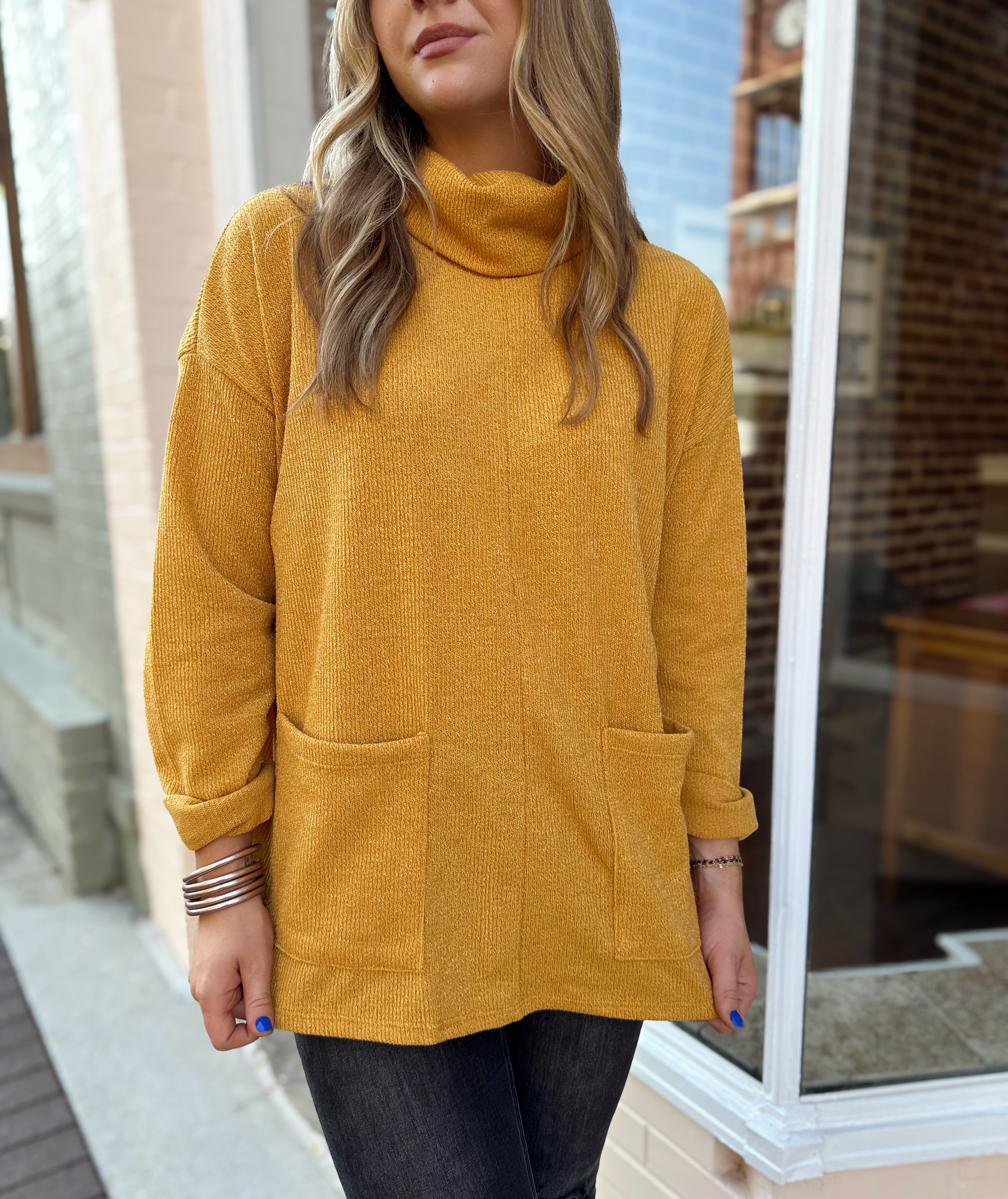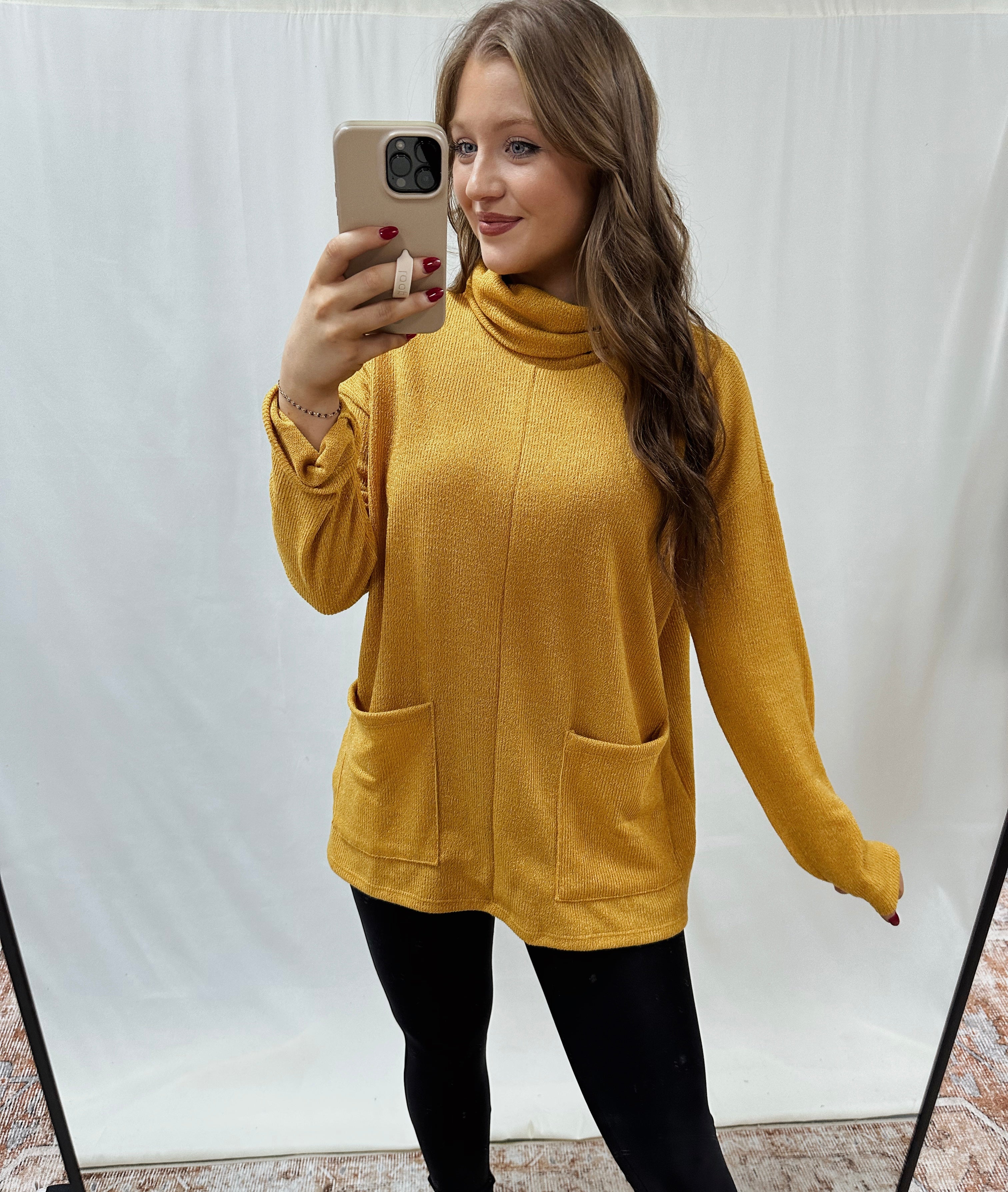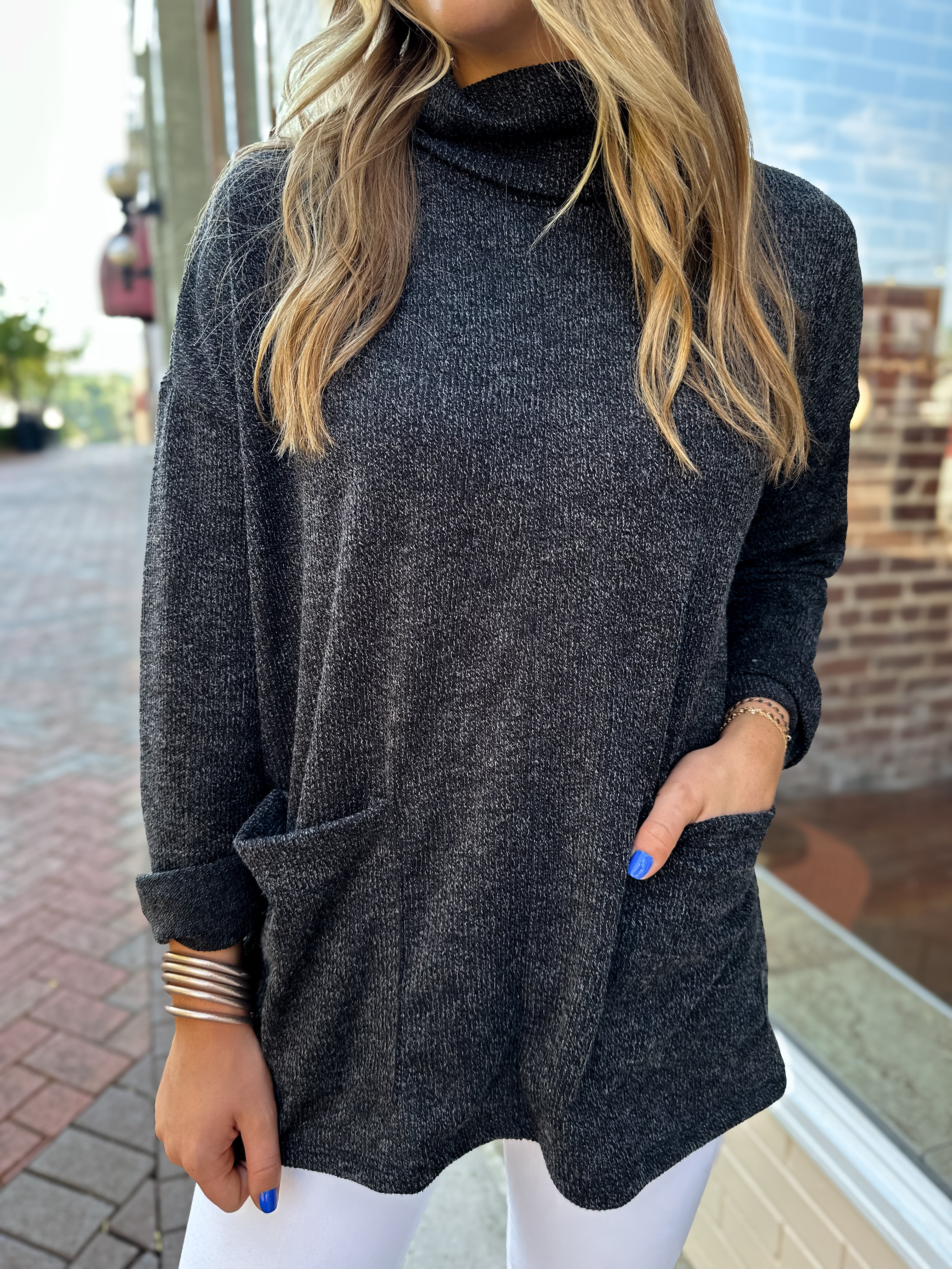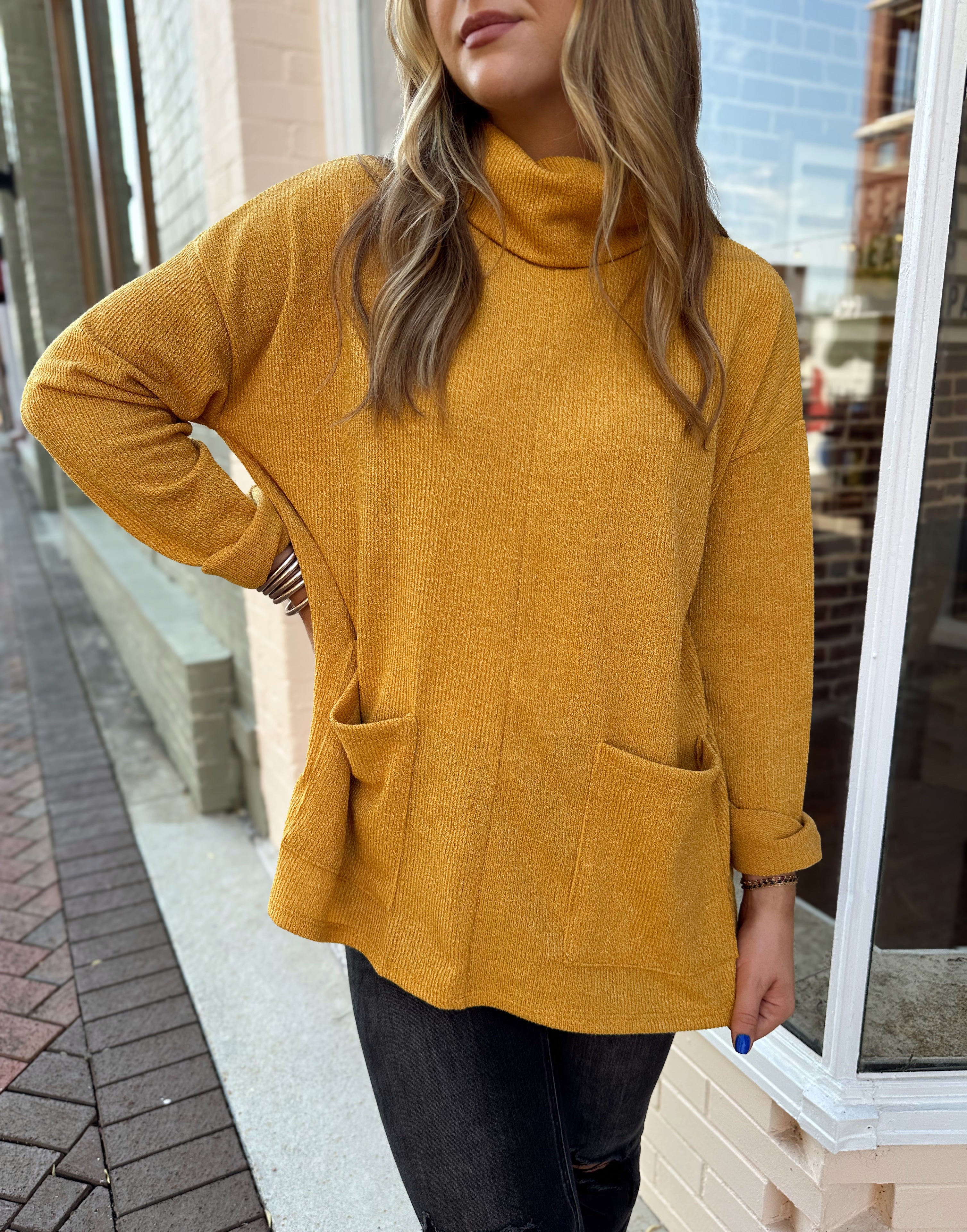 Stay cozy and stylish with our NEW turtleneck sweater! It will fit in perfectly with your everyday wardrobe.