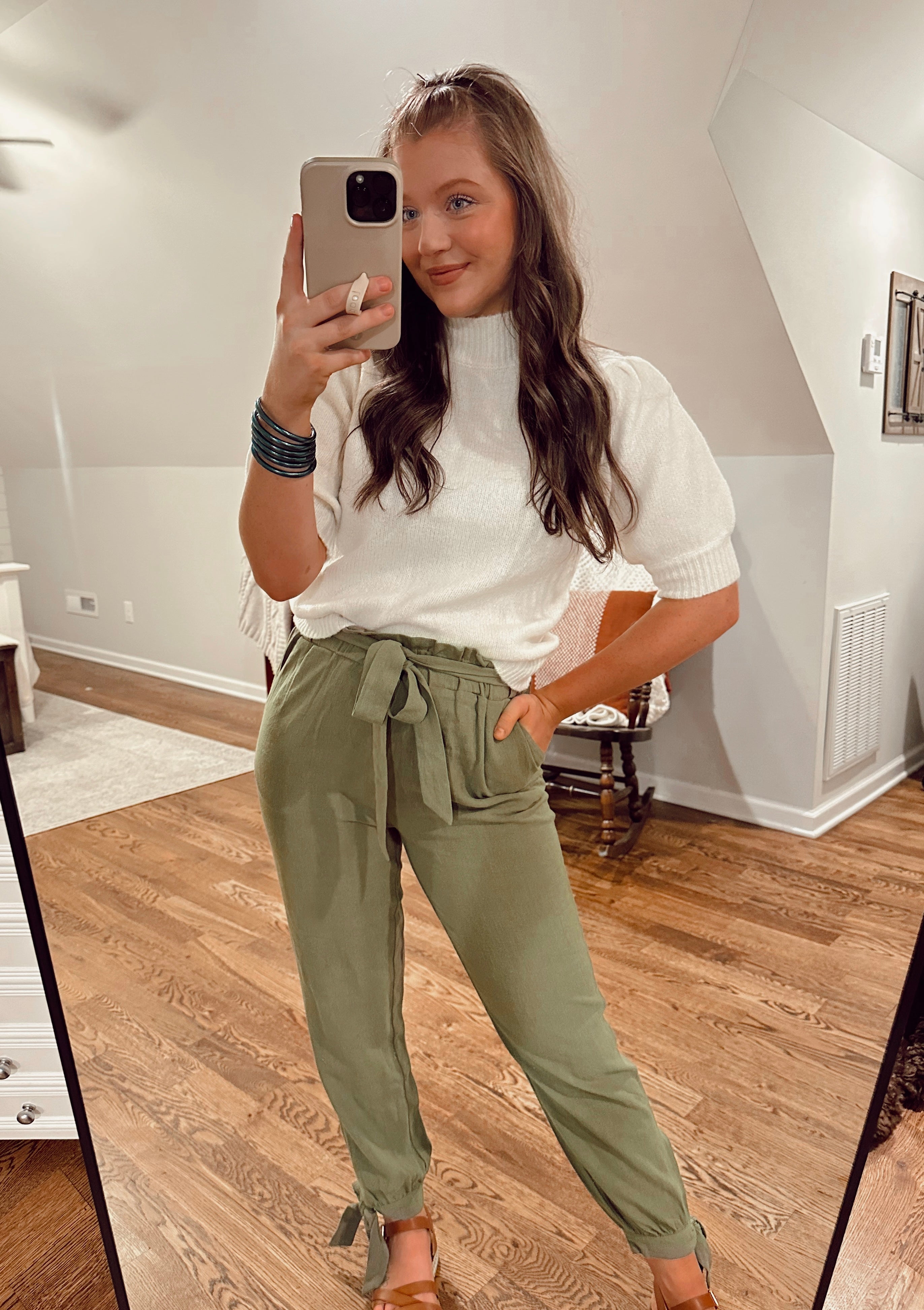 These cute pants run true to size! Elizabeth is pictured wearing the size small!