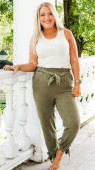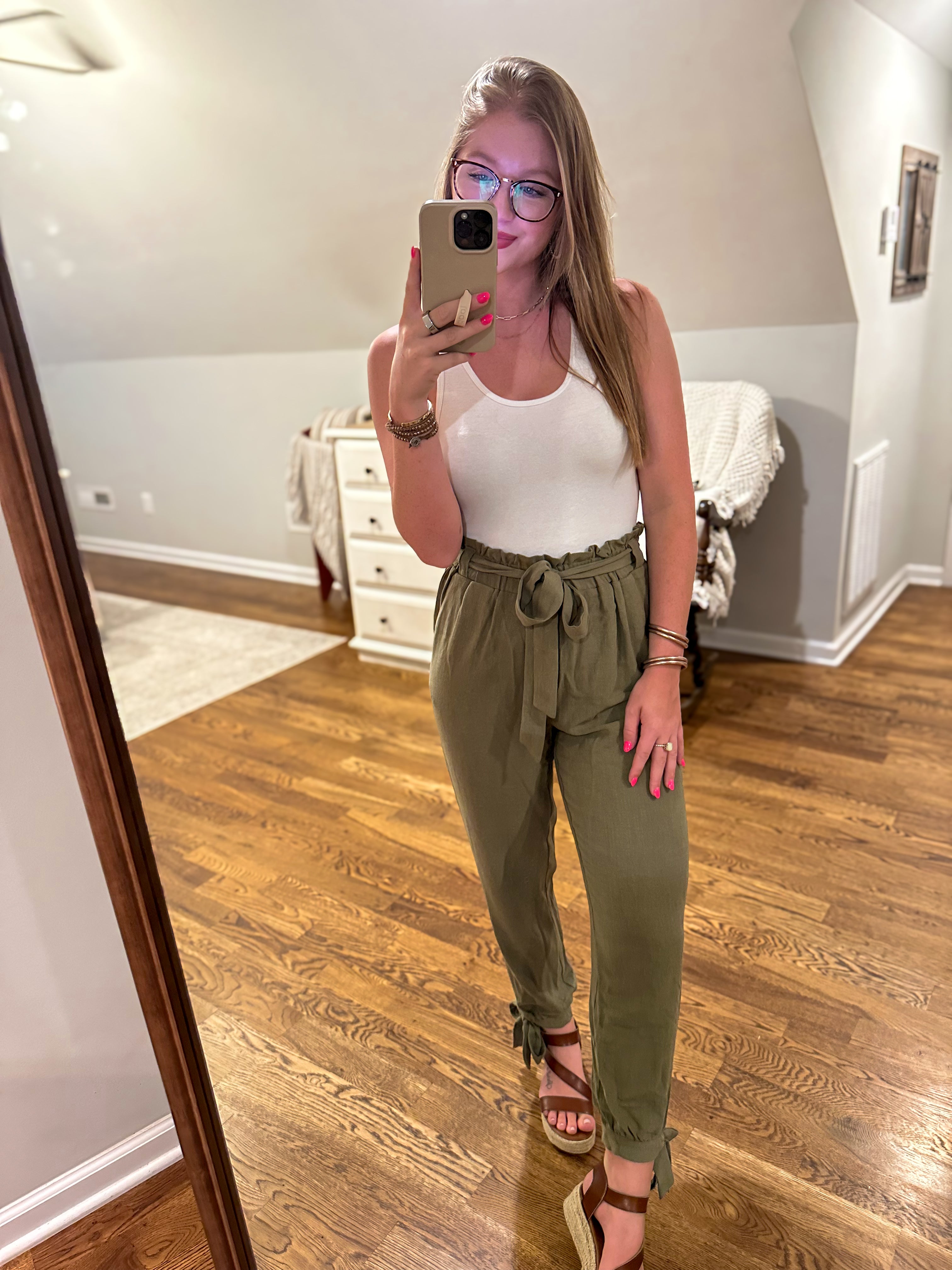 These pants are perfect to take you from work to evenings out! They feature a paper bag high waist style.