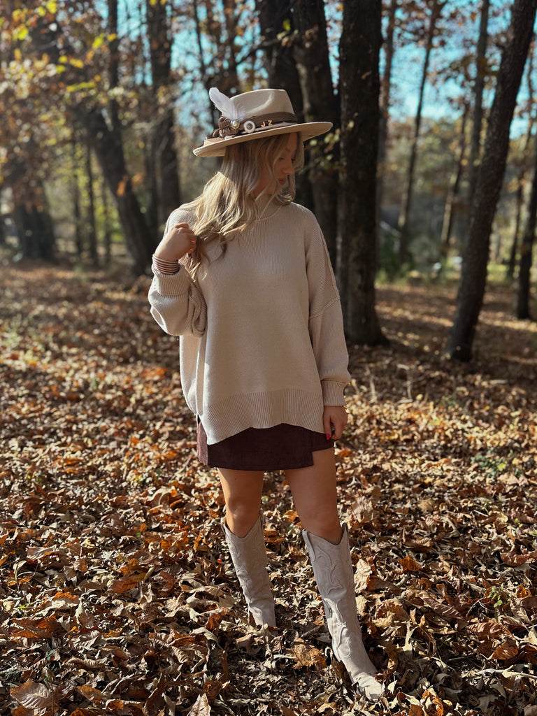 Elevate your fall wardrobe with this high-quality oversized sweater, designed with comfort and style in mind. Crafted from a durable knit material, it features subtle side slits for added movement and a flattering drape. The cozy blend of 56% cotton, 38% acrylic, and 6% nylon ensures warmth without sacrificing softness. Perfect for pairing over a mini skirt and boots, this sweater is your go-to piece for all fall festivities— from pumpkin patches to fireside evenings.
