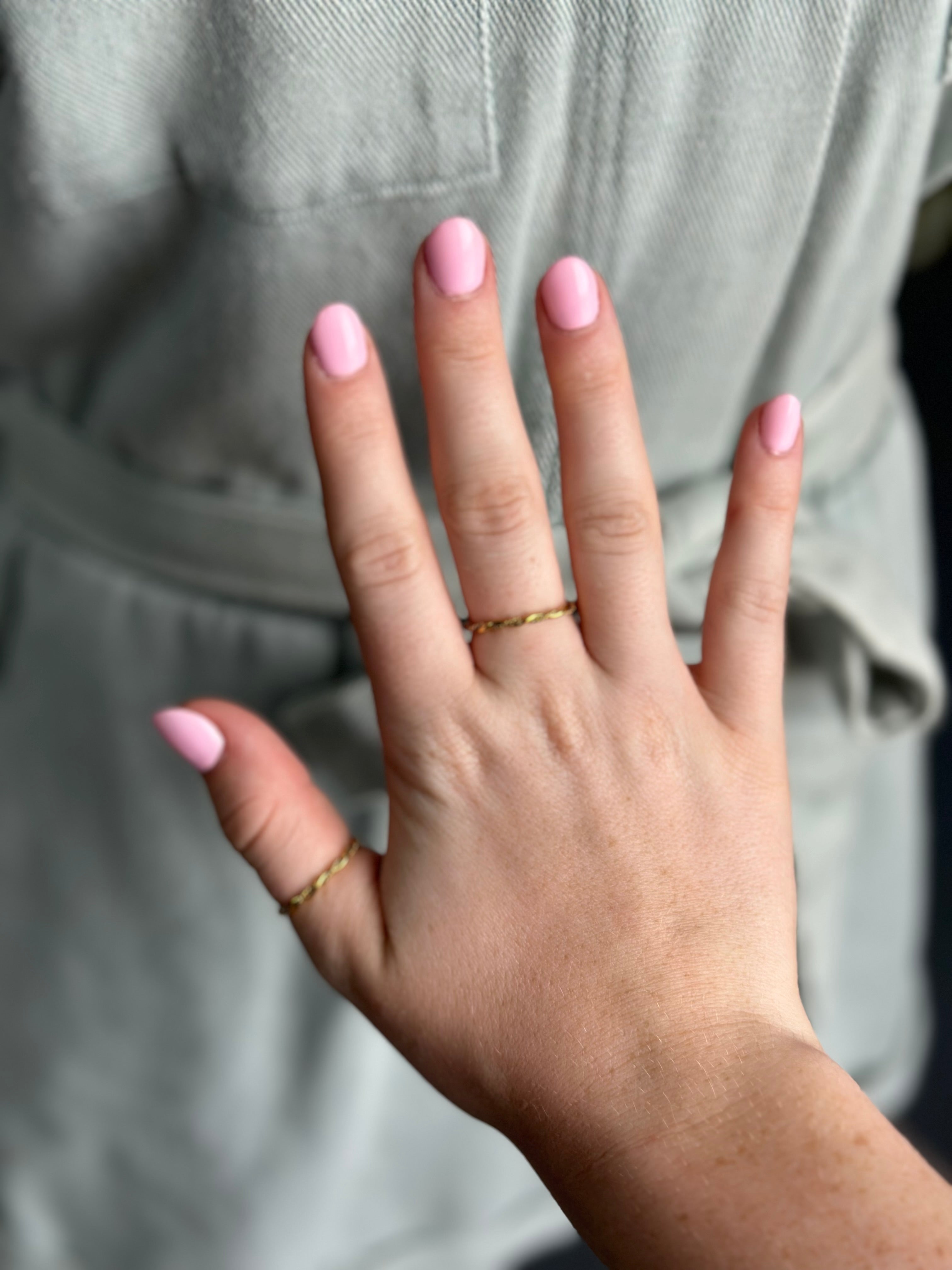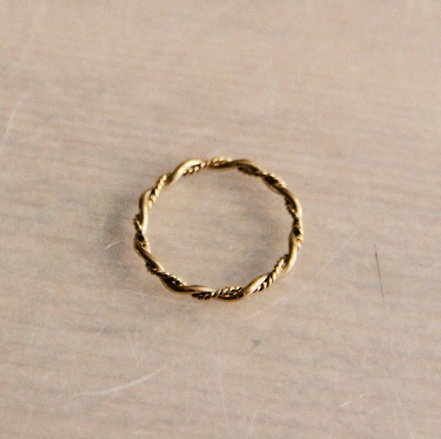 The gold-colored steel link ring is available in size 7 (17.3mm). The ring is made of stainless steel and does not discolor.