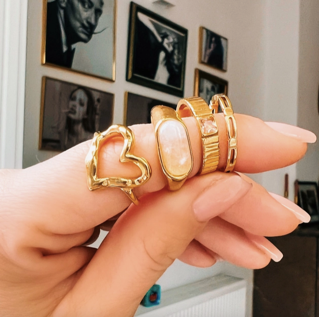 The gold-colored steel double ring is available in size 7. The ring is made of stainless steel and will not discolor!