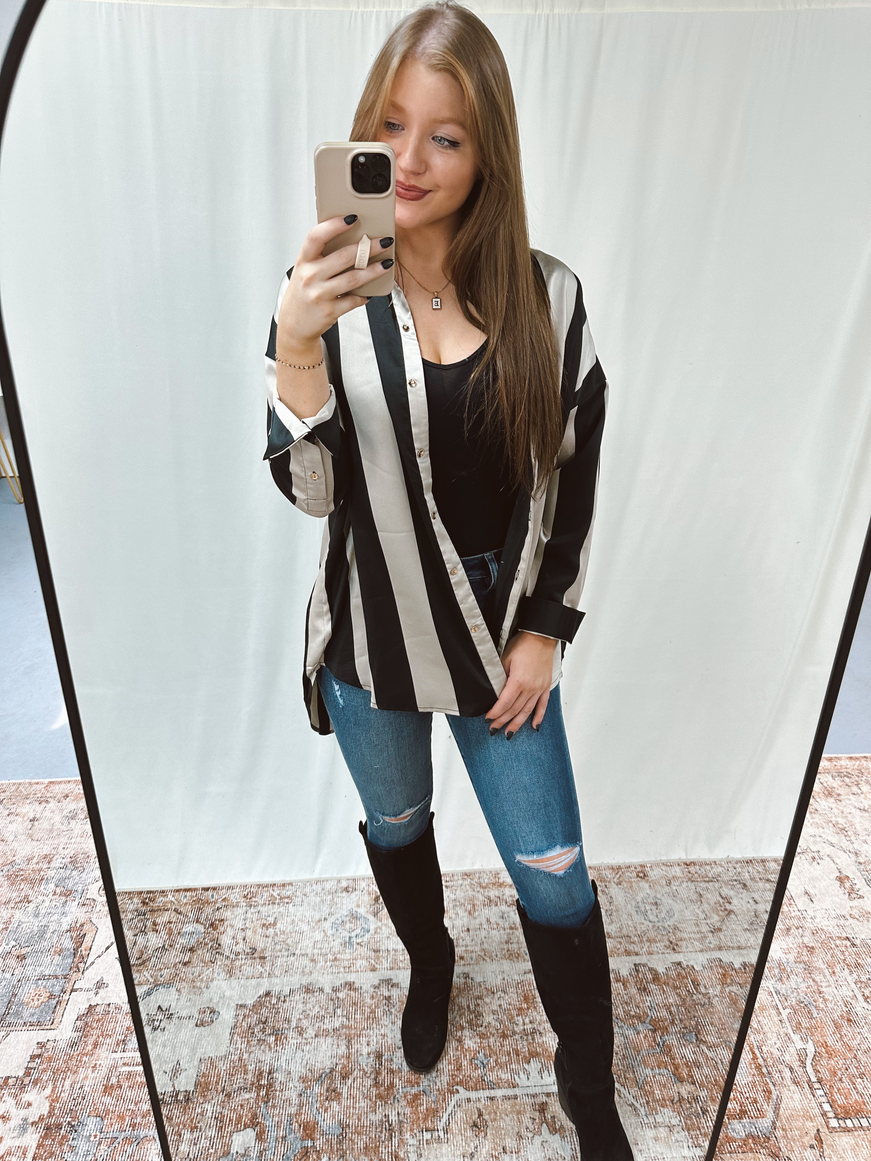 The chic material and timeless pattern makes for a must-have item! It will compliment your wardrobe perfectly!