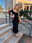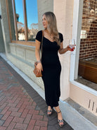 The sweetheart neckline adds a touch of classic elegance to the dress, making it suitable for various occasions. The short sleeves provide comfort and ease of movement, making this dress perfect for both casual and dressed-up affairs.